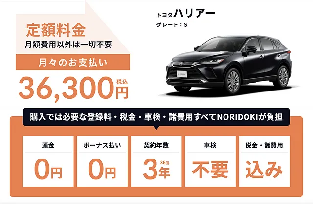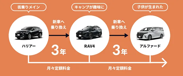 3年ごとに新車に乗換えるサブスクリプション(カーリース)サービス。